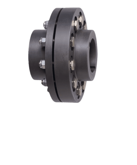 This is one of the oldest designs of elastomeric flexible couplings. Rubber / Polyurethane ( PU ) bushes are used for dampening the shocks & vibrations. These bushes are mounted on Pin Side hub by means of coupling pins & nuts. These bushes go inside the holes on the Bush Side hub. Torque is transmitted through the pins to the bushes into the other hub. The design is failsafe, provides torsional flexibility, and compensates for all kinds of misalignments while protecting equipment against vibrations and shocks. Pin bush coupling provides minimum distance between the shaft ends. All over accurate machining provides inbuilt dynamic balancing. The coupling is easy to dismantle. It does not require moving of the driven / driving equipment for inspection / replacement of the elastomers.